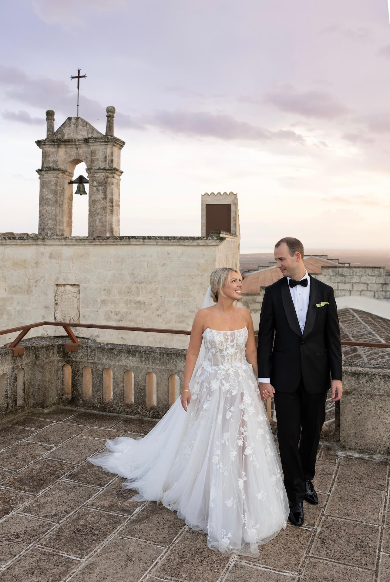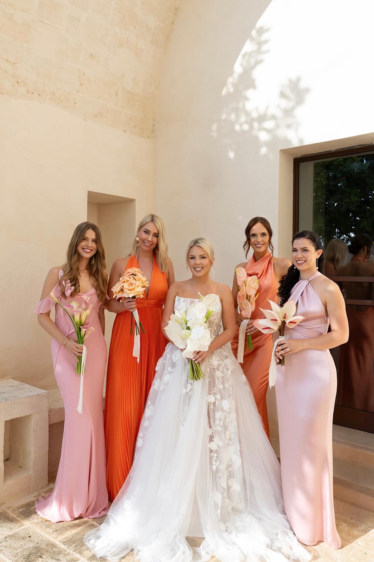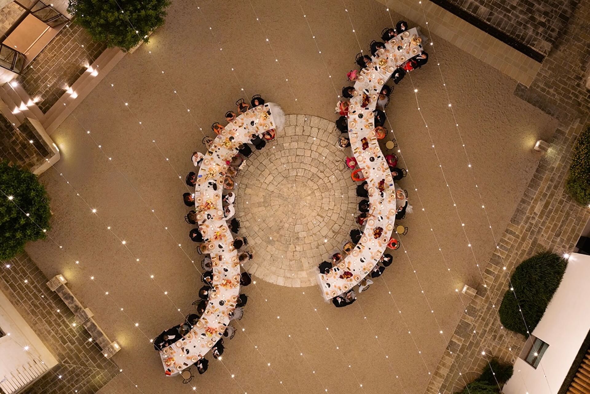 Set against the luxurious backdrop of Masseria Amastuola in Puglia, J & A’s glamorous two-day destination wedding unfolded in a series of unforgettable moments. The celebration began with an all-white Aperol Spritz party, setting a chic and playful tone for the days ahead. The ceremony took place in the villa’s lush garden, where a circular seating design created an intimate, sculptural atmosphere.